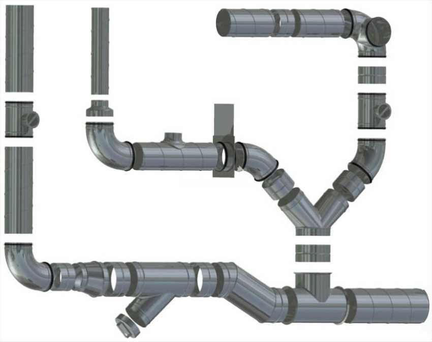 Для сборки пластиковых воздуховодов в единую вентиляционную систему применяются различные элементы: