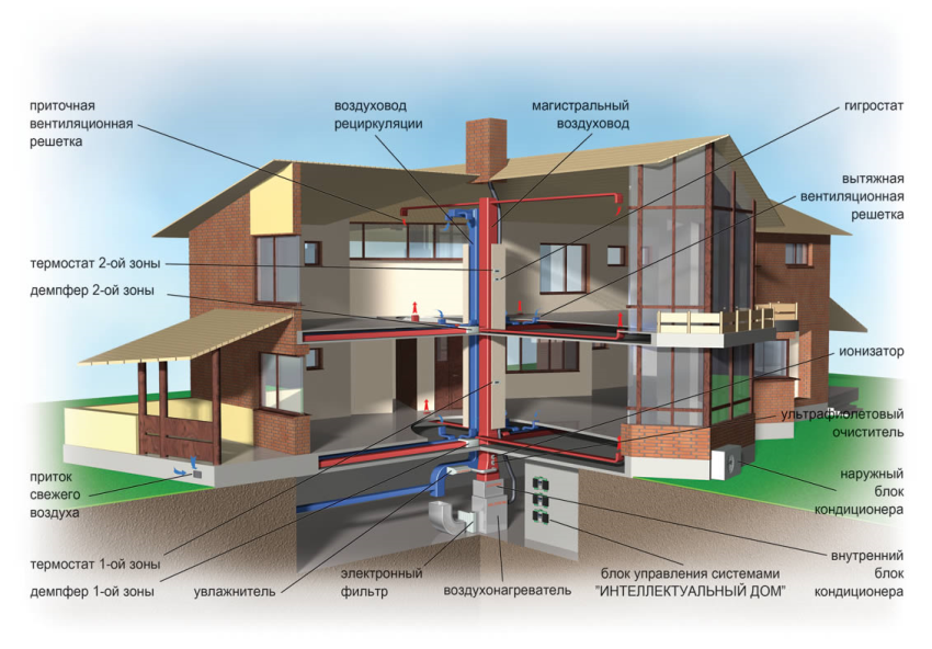 Достоинства подобного типа конструкций в том, что они совершенно не зависят от погоды за окном, очищение воздуха в помещении обусловлено системой фильтров, кроме того, можно менять температуру воздушного потока.