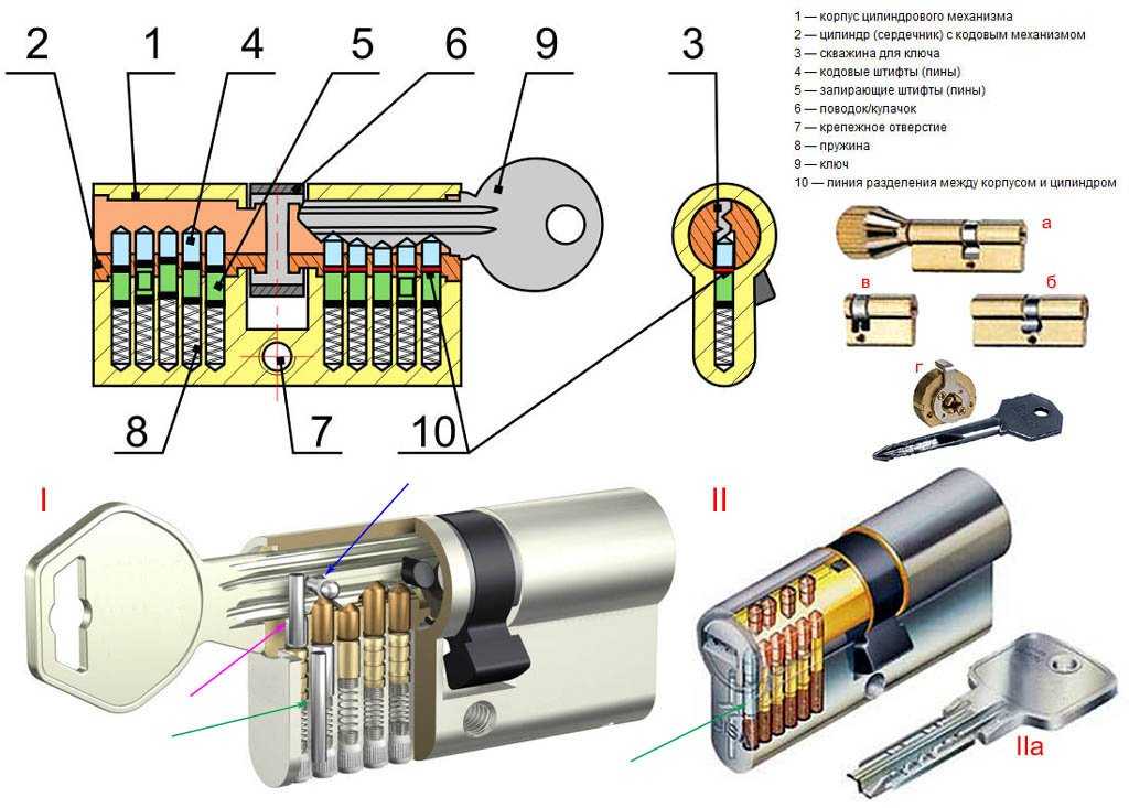 - цилиндровыми – личина замка представляет собой цилиндр, в котором в определенном порядке двигаются пины;