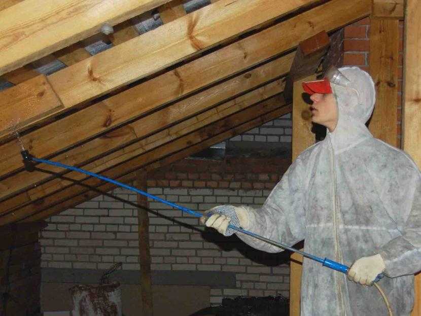 Обработка стропил огнезащитной пропиткойИсточник stopfire.su
