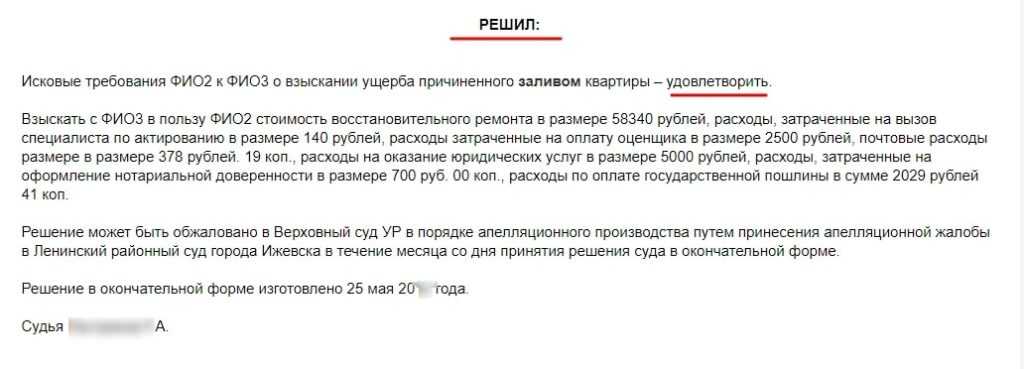 В большинстве случаев суды удовлетворяют иски о возмещении материального ущерба, если хозяева пострадали из-за затопления. Ответчики вынуждены брать на себя не только расходы на ремонт, они же компенсируют затраты на экспертизу и юридические услуги.